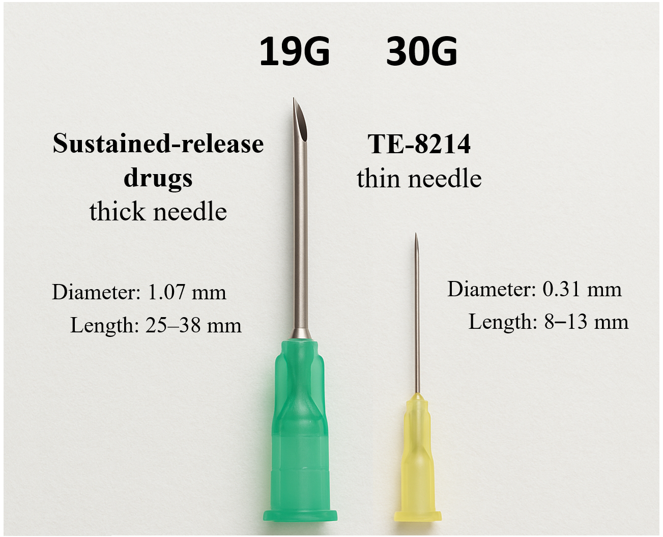• Pioneering Patient Experience: TE-8214, a highly water-soluble aqueous solution, enables pain-free subcutaneous injection with a thin 30G needle, eliminating injection site reactions seen with current therapies.